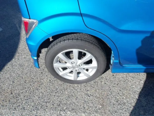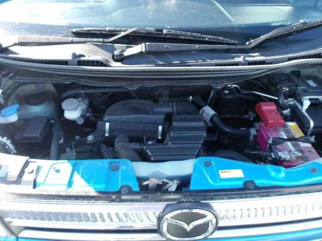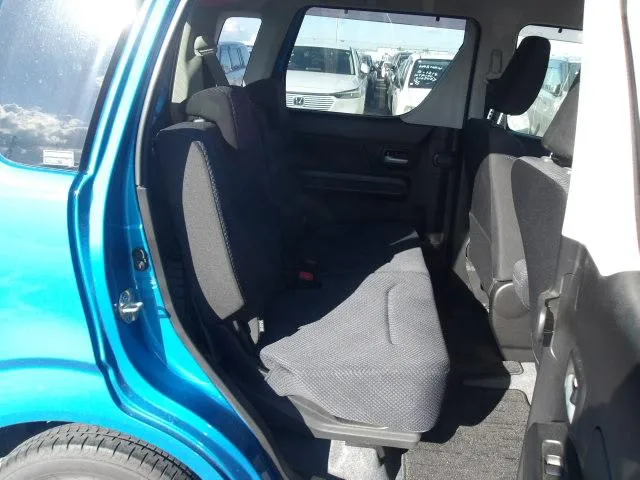 Inside, the Mazda Flair FZ Hybrid 2019 offers a "tall-boy" design that provides massive headroom and a spacious feel. The interior is packed with technology, including a Heads-Up Display that projects vital driving information onto the windshield and a push-start ignition for convenience. The sky blue exterior is complemented by xenon headlights for superior nighttime visibility and sleek factory alloy rims. With its wide-opening doors and flexible seating arrangements, the cabin is as practical as it is high-tech, making it one of the most comfortable compact cars in the market.
