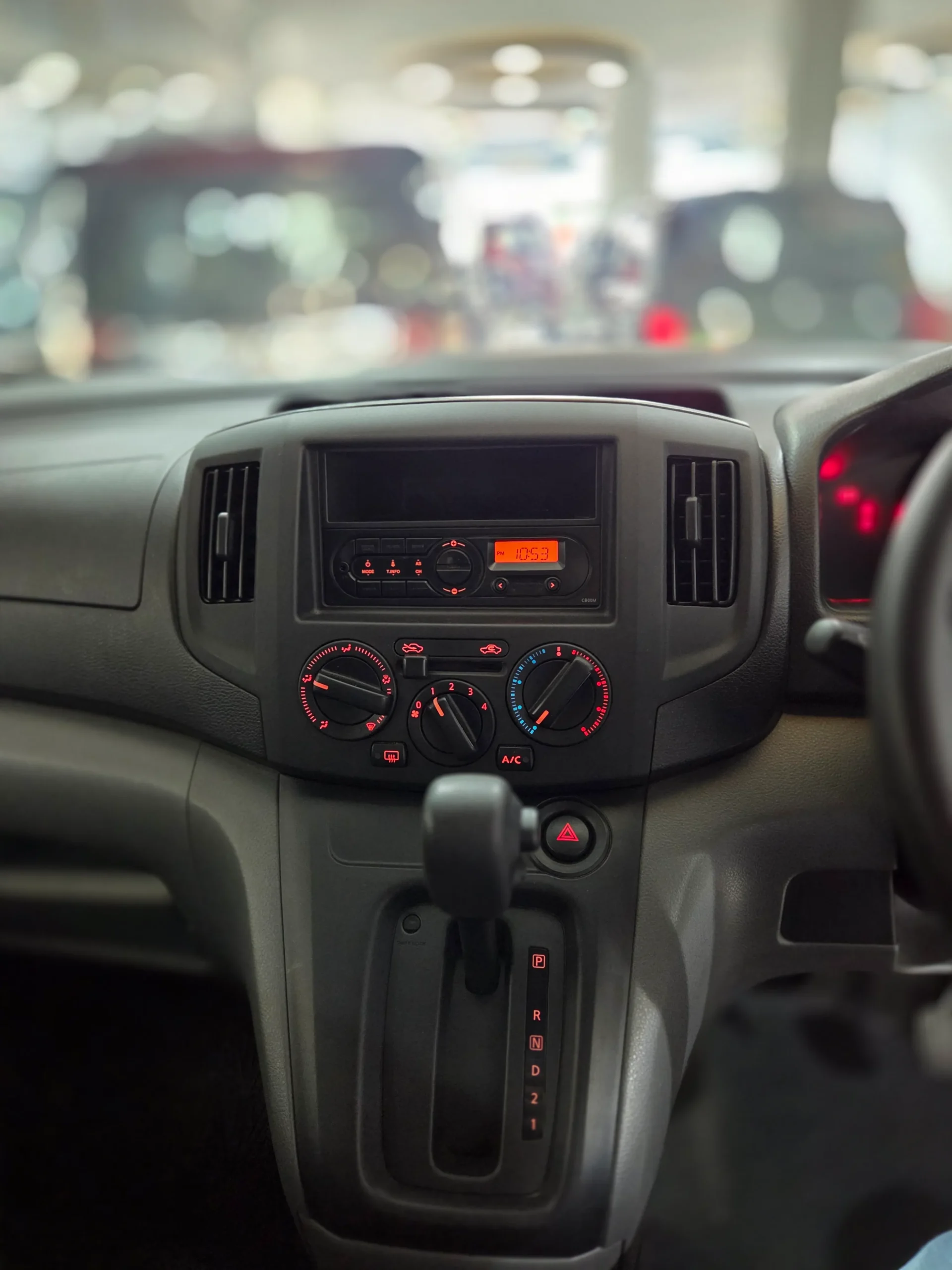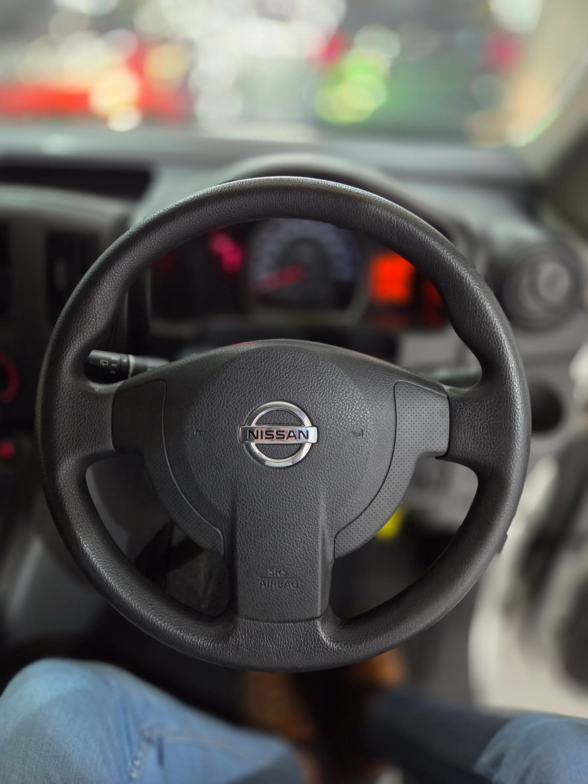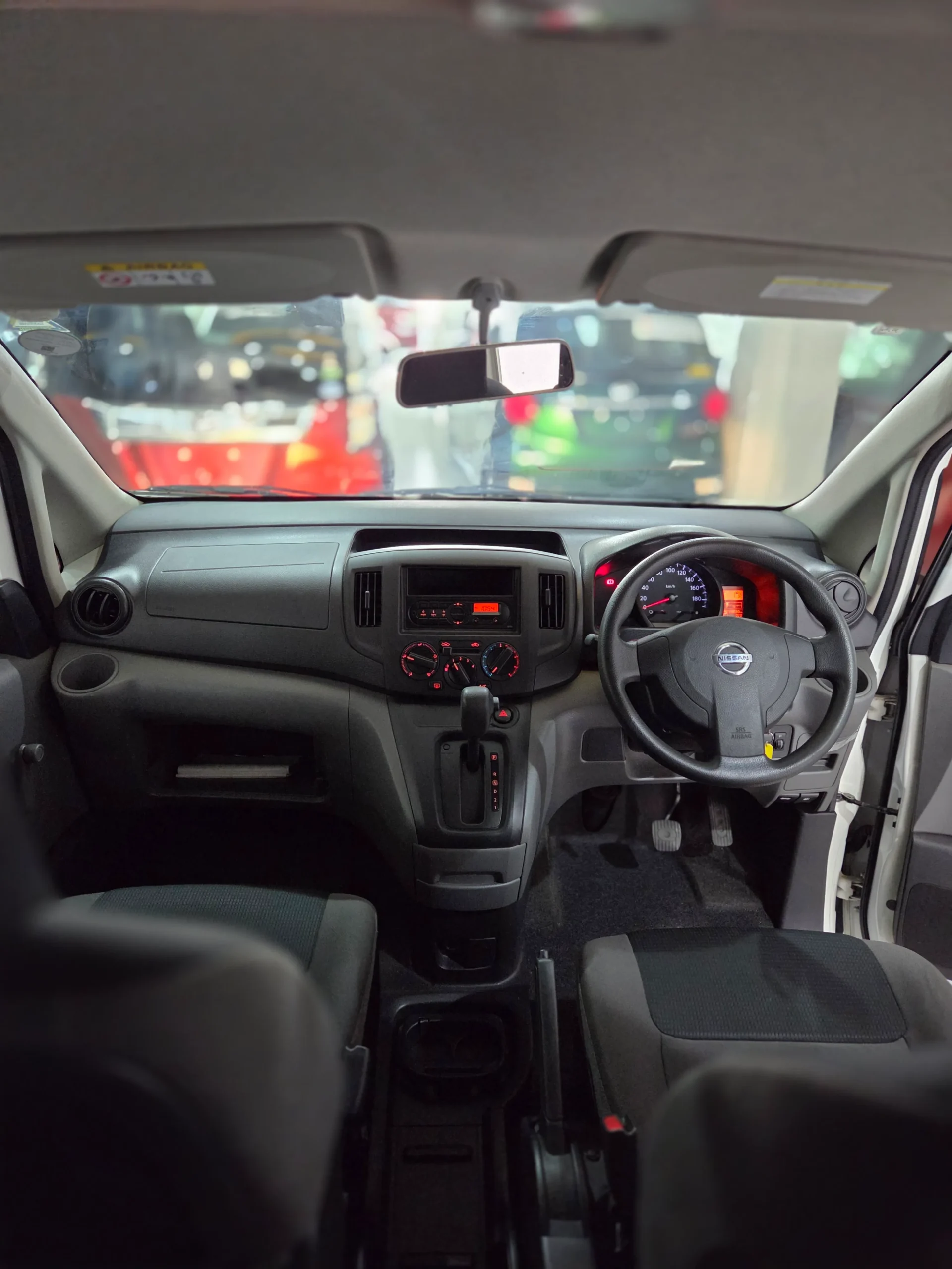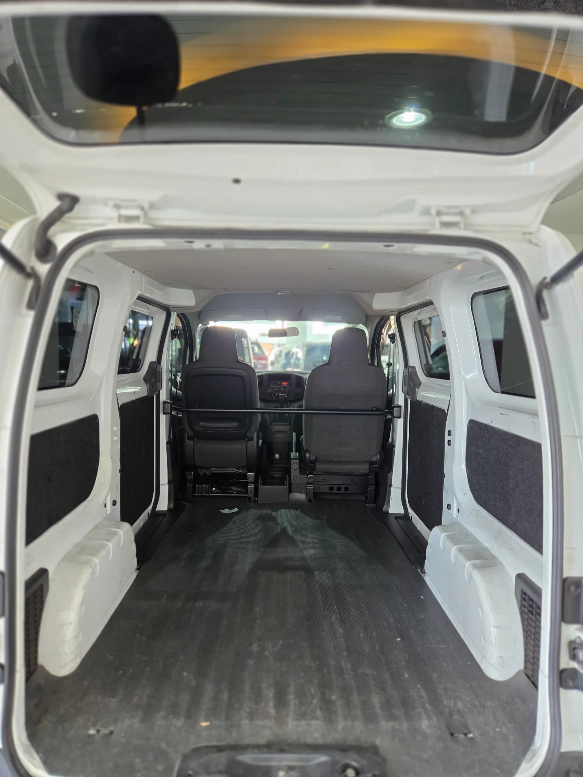 Inside the cabin, the NV200 offers a straightforward and functional interior with all manual windows, durable seats, and easy to reach controls designed for long term use. The two seat configuration maximizes rear cargo space, allowing you to transport goods efficiently. The wide sliding door and rear opening doors make loading and unloading simple and fast. The flat cargo floor and strong suspension setup make it suitable for carrying tools, packages, or equipment without compromising stability.